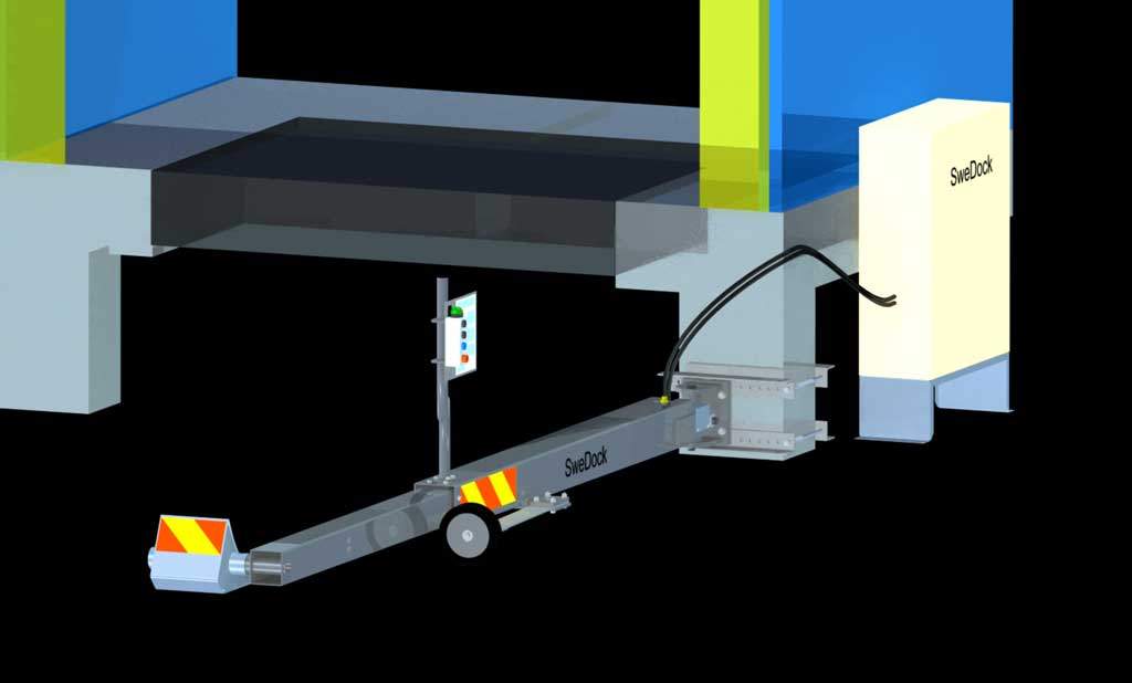 Hydraulaggregat finns i varje styrskåp och ger kraftförsörjning åt den teleskopiska driften av lastsäkringsarmen SweDock.
